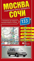 Detaillierte Landkarte der Strecke von Moskau nach Sotschi. Die Strecke ist kilometriert. Mit Stadtplan von Sotschi und Übersichtsplan von Moskau.