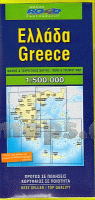 Großformatige, sehr detaillierte topografische Straßenkarte von Griechenland. Zweiteilig, enthält eine Karte Nord-Griechenland (Festland) und eine Karte Süd-Griechenland (Inseln) jeweils mit Ortsverzeichnis. Alle Beschriftungen auf griechisch und lateinisch.