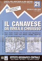 21 Il Canavese da Ivrea a Chivasso (mit Radwegen) - Topographische Wanderkarte 1:50.000 IGC Italien