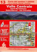 13 Valle Centrale - Saint-Barthélemy - Saint-Marcel - Val Clavalité (wasserfest) Topographische Wanderkarte 1:25.000 l`Escursionista Editore - Italien