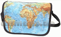 Praktische Schultertasche mit Weltkarte. Die Tasche ist handlich und praktisch zugleich. Es passen ein Laptop/Notebook mit max. 15,6 Zoll, ein A4-Aktenordner/Buch und einige Hefte problemlos hinein. Ein großes Vorderfach mit Reißverschluss unter dem Überschlag bietet Platz für Ihre ID-/Kreditkarte, IPhone oder Geldbörse. Ein kleines Reißverschlussfach schafft Platz für diverse Kleinteile wie Schlüssel usw. Der verstellbare Schultergurt mit gepolsterter Einlage sorgt für einen angenehmen Tragekomfort. Material: 600D Polyester mit digitalem Stoffdruck Format: 38 x 30 x 10 cm.